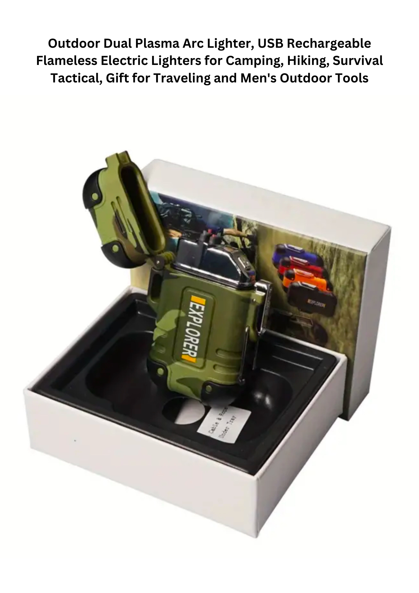 1 x Outdoor Dual Plasma Arc Lighter, USB Rechargeable Flameless Electric Lighters for Camping, Hiking, Survival Tactical, Gift for Traveling and Men's Outdoor Tools